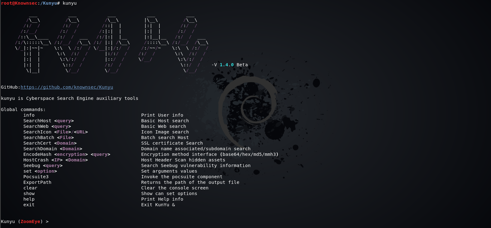 Kunyu 是基于 ZoomEye 开发的工具,旨在让企业资产梳理更加高效,使更多安全从业者了解、使用网络空间测绘技术。