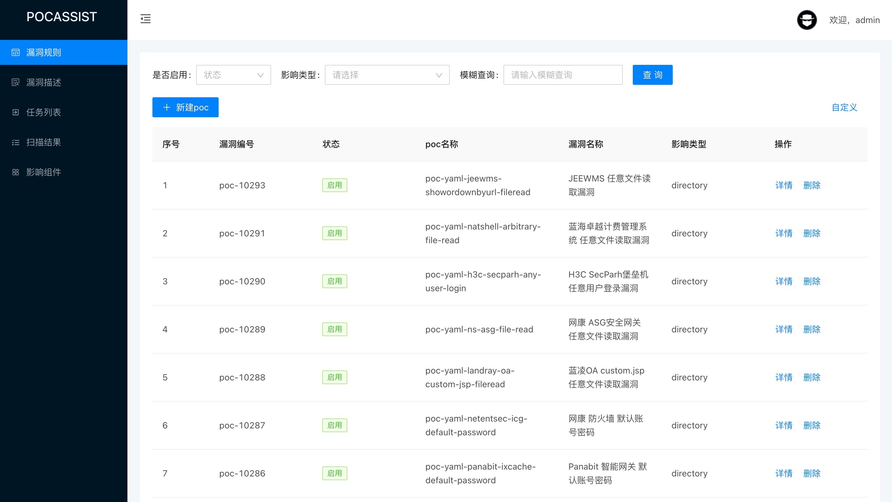 Pocassist 是一个 Golang 编写的全新开源漏洞测试框架,帮助安全人员专注于漏洞验证的逻辑的实现。Pocassist 提供了简洁的 Web 图形化界面,用户可以在线编辑漏洞验证程序即可进行批量的测试;规则完全兼容 xray,可以直接使用现有开源的 PoC 库,同时也支持添加自定义规则。